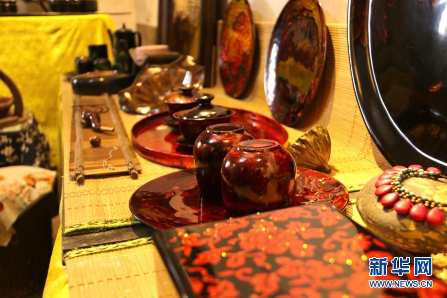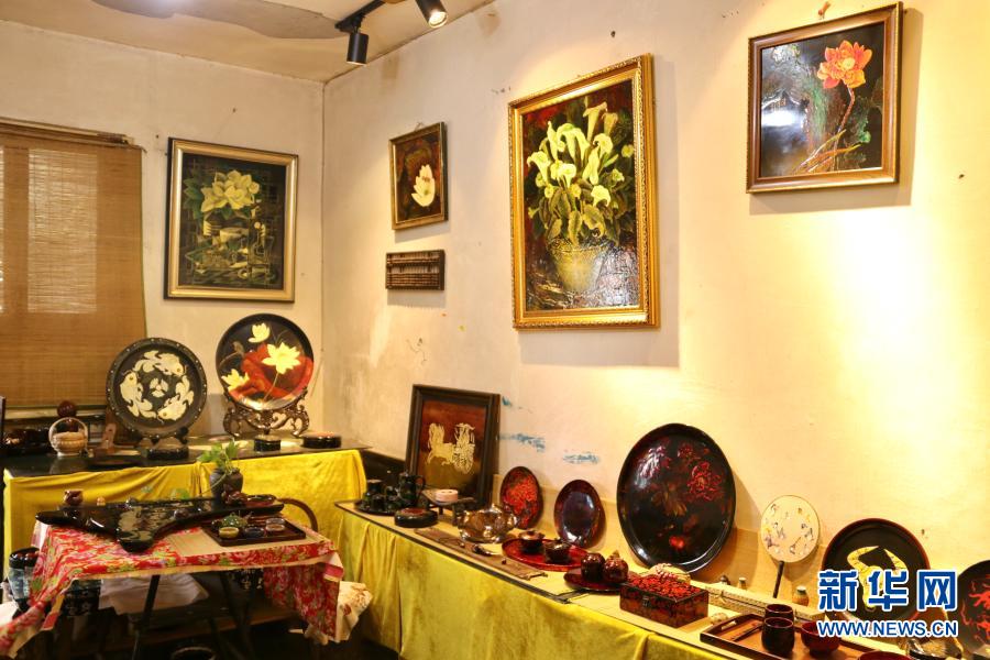 重慶漆藝第六代市級傳承人陳芷月的漆藝工作室里,陳列著她制作的漆器(8月10日攝)。新華社記者 吳燕霞 攝