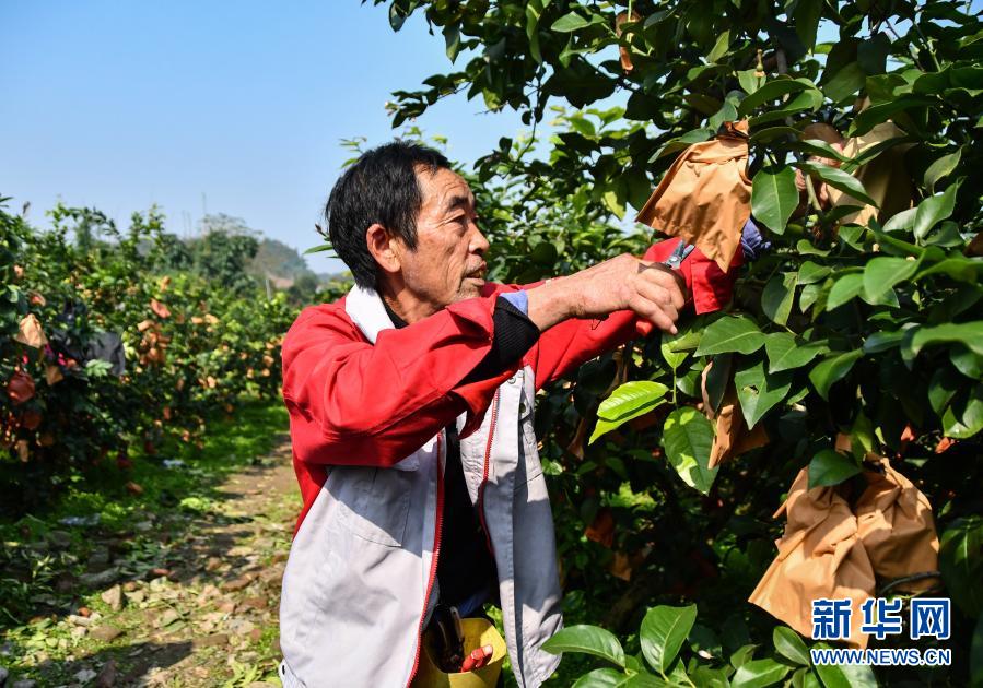 在四川省資陽市安岳縣石橋村,果農在采摘檸檬(11月11日攝)。新華社記者 周相吉 攝