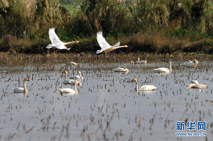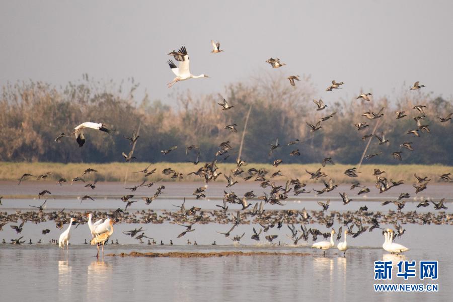 這是在鄱陽湖濕地地區(qū)江西省南昌市高新區(qū)鯉魚洲管理處周邊水域拍攝的越冬候鳥(11月5日攝)。新華社記者 彭昭之 攝