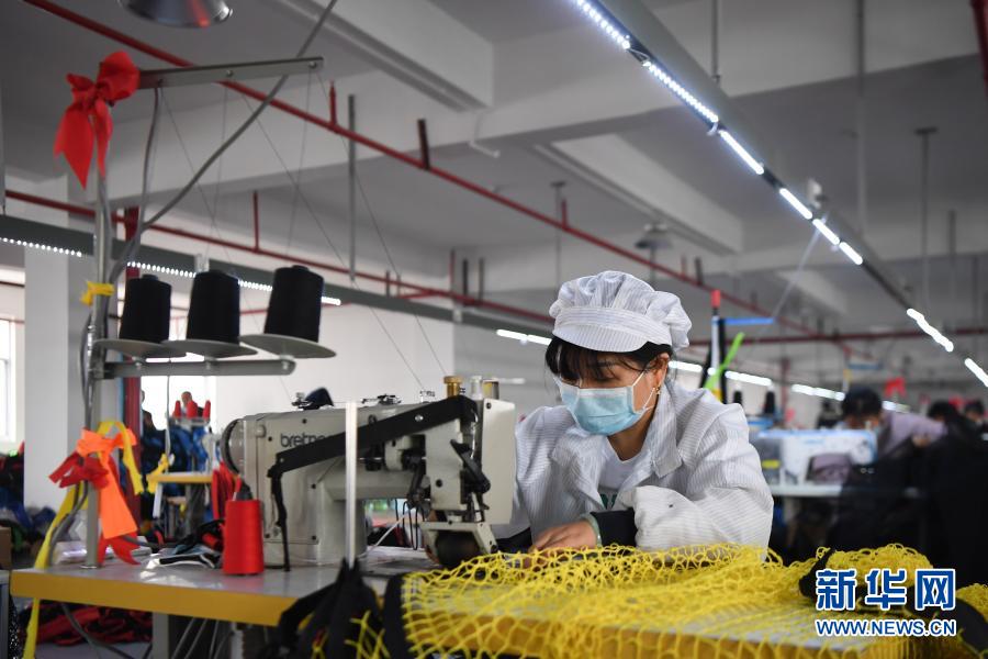 工人在湖南星海運動用品有限公司加工運動用網(wǎng)(10月28日攝)。新華社記者 薛宇舸 攝