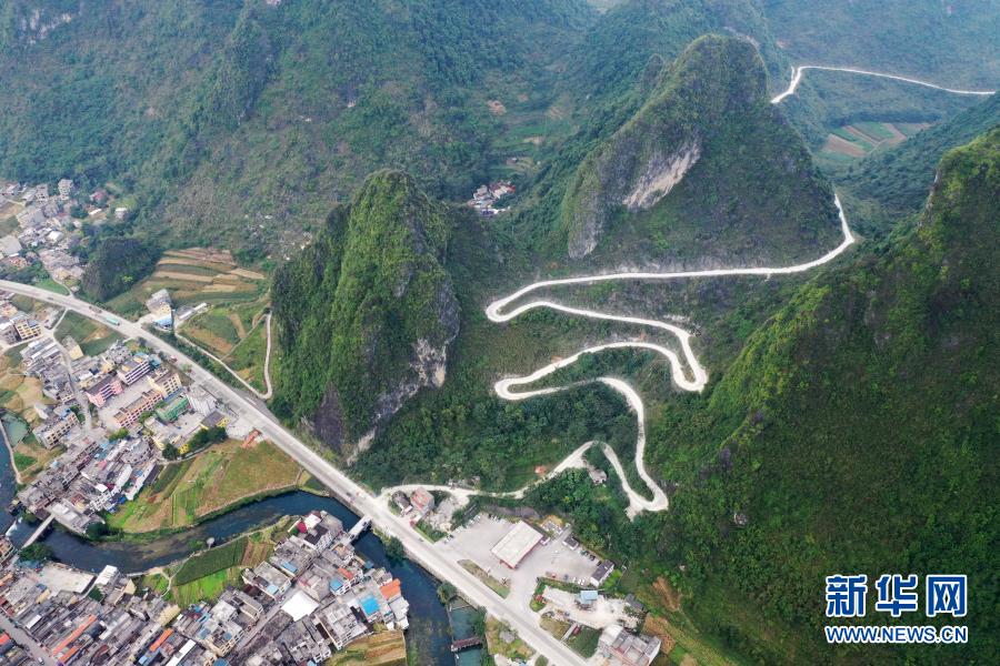 這是廣西都安瑤族自治縣大興鎮(zhèn)境內(nèi)的公路(10月28日攝,無人機(jī)照片)。新華社記者 陸波岸 攝