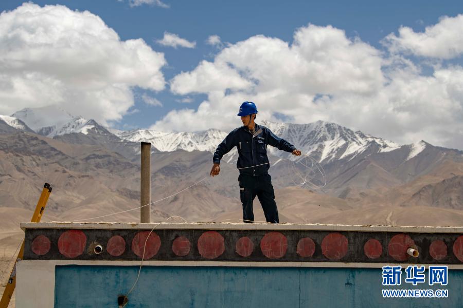 在新疆喀什地區塔什庫爾干塔吉克自治縣,工作人員為當地農戶鋪設入戶光纖(6月10日攝)。目前,喀什地區已實現光纖入戶全覆蓋。新華社記者 胡虎虎 攝