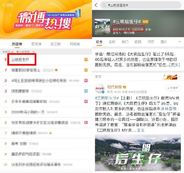 截至11月29日18:30,《三明后生仔》MV全網(wǎng)閱讀量破億。