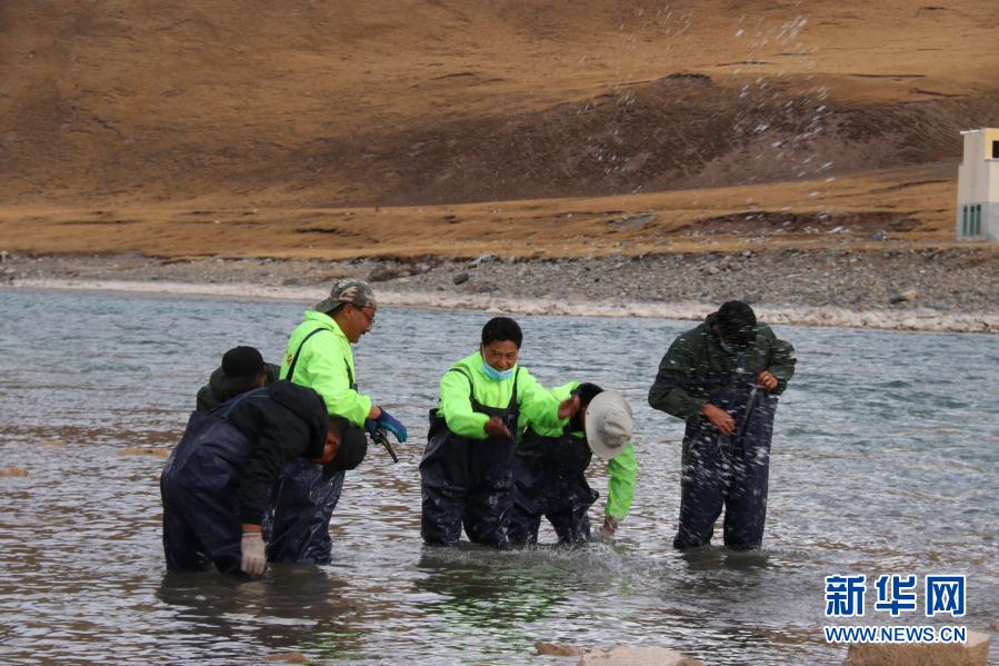 三江源國家公園治多生態環保協會的志愿者在清理河道內的垃圾(7月11日攝)。新華社發