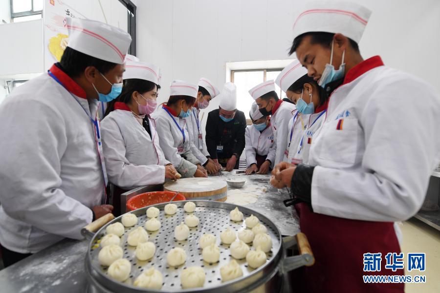 東鄉(xiāng)縣職業(yè)技術(shù)學(xué)校中式烹飪培訓(xùn)班學(xué)員在學(xué)習(xí)包子制作技能(4月21日攝)。新華社記者 范培珅 攝