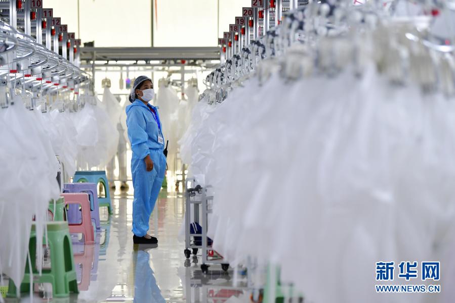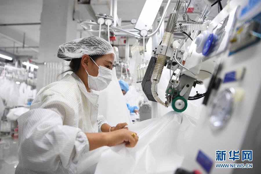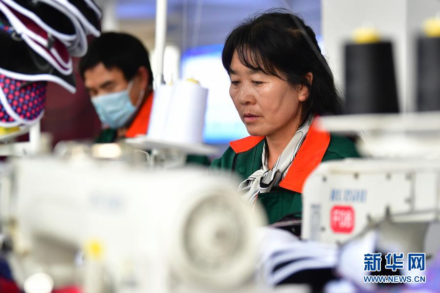 在臨夏回族自治州積石山縣,依托東西部扶貧協(xié)作平臺(tái)引進(jìn)的服裝加工企業(yè)甘肅拓奇扶貧車間的員工在服裝加工生產(chǎn)線上作業(yè)(8月9日攝)。新華社記者 陳斌 攝