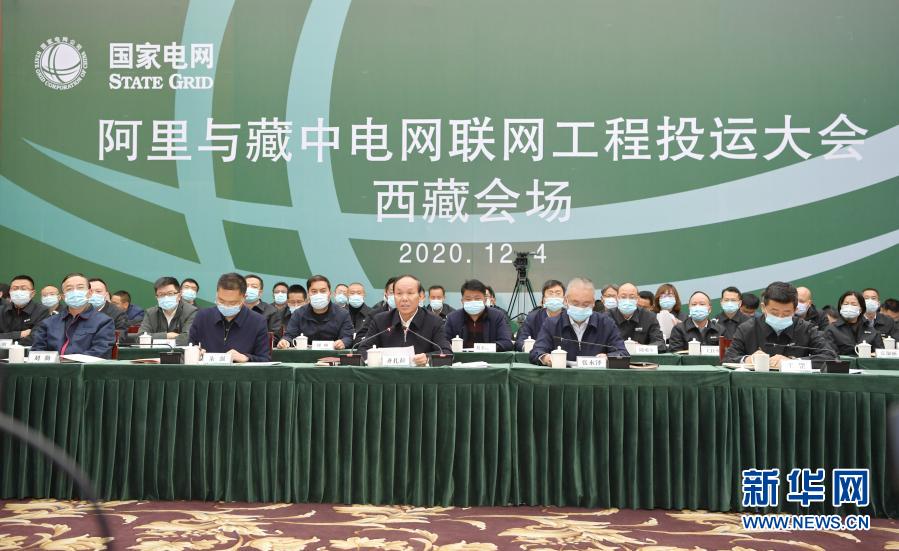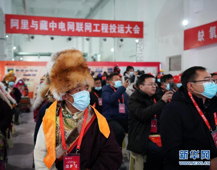 12月4日在拉薩拍攝的西藏阿里與藏中電網(wǎng)聯(lián)網(wǎng)工程投運大會西藏會場。新華社記者 張汝鋒 攝