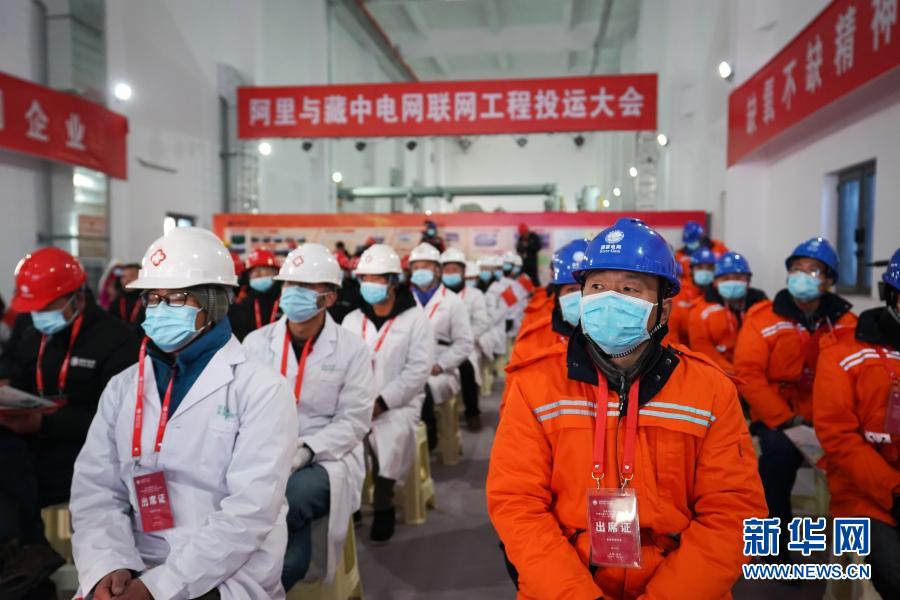 12月4日拍攝的西藏阿里與藏中電網(wǎng)聯(lián)網(wǎng)工程投運大會霍爾220千伏變電站分會場。新華社記者 詹彥 攝