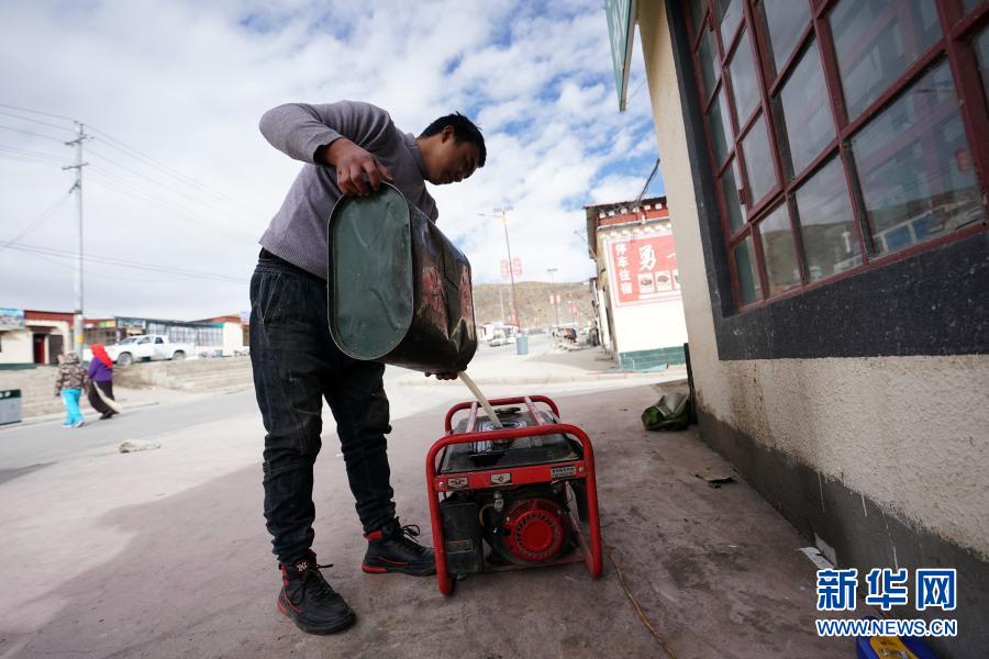 在西藏阿里地區(qū)普蘭縣巴嘎鄉(xiāng)崗莎村,一家飯店的工作人員準(zhǔn)備用發(fā)電機發(fā)電(11月29日攝)。新華社記者 詹彥 攝