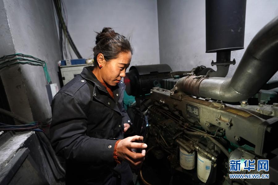 在西藏日喀則市薩嘎縣西部驛站大酒店,工作人員查看發(fā)電機運行情況(11月27日攝)。新華社記者 詹彥 攝