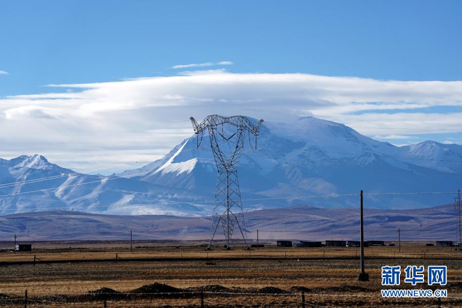 11月29日在西藏阿里地區(qū)普蘭縣拍攝的西藏阿里與藏中電網(wǎng)聯(lián)網(wǎng)工程輸電鐵塔。新華社記者 詹彥 攝