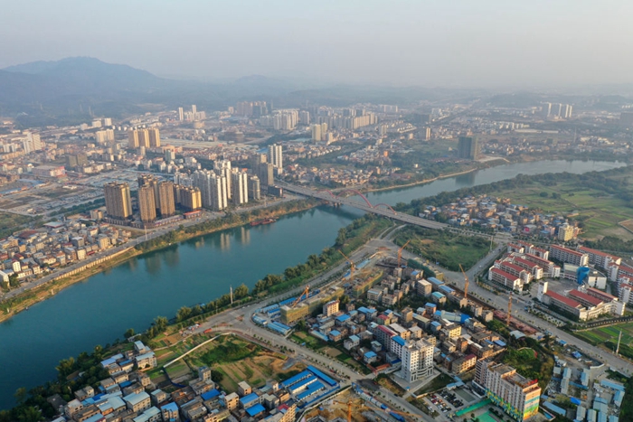 廣西百色市城區新貌(2019年8月29日攝,無人機照片)。新華社記者 曹祎銘 攝