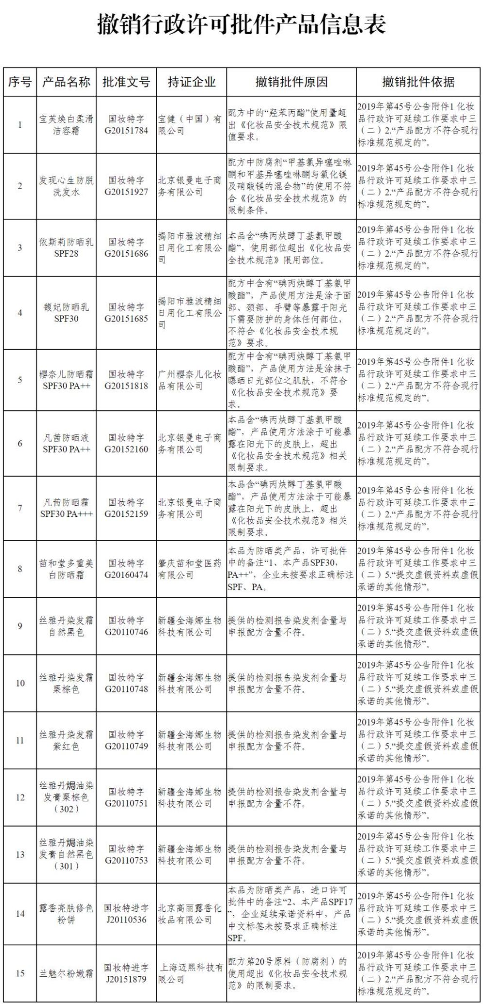 國家藥監局再出手!15個特殊用途化妝品被撤銷