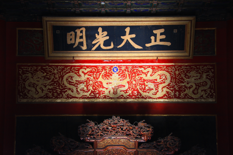 “正大光明”匾由順治帝題寫(xiě),懸掛于乾清宮寶座上方。因雍正帝視其為宮中最高且最難接觸之地,故決定將立儲(chǔ)密折存放其后。