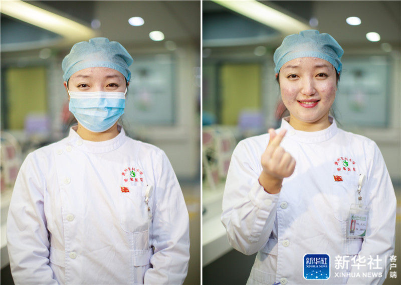 ↑拼版照片左圖:3月8日,武漢體育中心方艙醫院正式休艙,國家緊急醫學救援隊(貴州)隊員葉青與康復患者分別時落淚(新華社記者 肖藝九 攝);右圖:12月17日在貴州醫科大學附屬醫院拍攝的護士葉青(新華社記者 劉續 攝)。新華社發