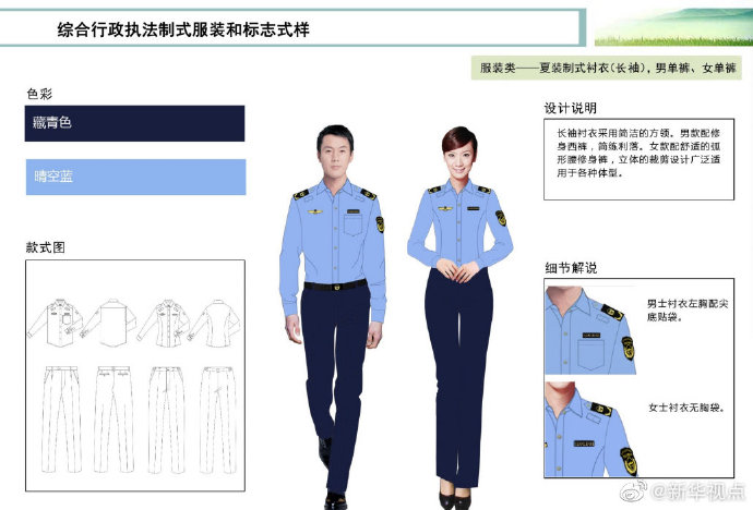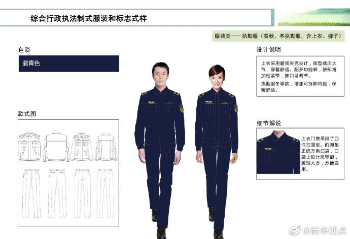 【這些綜合行政執(zhí)法部門將統(tǒng)一著裝,你喜歡嗎?】財(cái)政部、司法部日前印發(fā)《綜合行政執(zhí)法制式服裝和標(biāo)志管理辦法》,明確加強(qiáng)生態(tài)環(huán)境保護(hù)、交通運(yùn)輸、農(nóng)業(yè)、文化市場、應(yīng)急管理、市場監(jiān)管等綜合行政執(zhí)法制式服裝和標(biāo)志管理。這6支綜合行政執(zhí)法隊(duì)伍將統(tǒng)一著裝,不同執(zhí)法隊(duì)伍通過標(biāo)志中的名稱和圖案加以區(qū)分,徹底解決長期以來不同執(zhí)法部門著裝五花八門的問題。來看看這些“新衣”預(yù)覽吧!(記者申鋮、白陽)