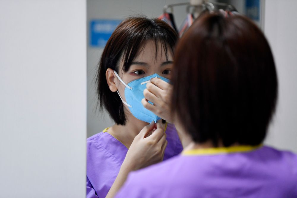 不同于剛到武漢時(shí),防護(hù)服穿上身要半個(gè)多小時(shí),輕車熟路的她如今10分鐘就能穿戴好。她還有個(gè)小妙招,將碘伏內(nèi)涂護(hù)目鏡,晾干后再佩戴會(huì)減少水霧的產(chǎn)生。