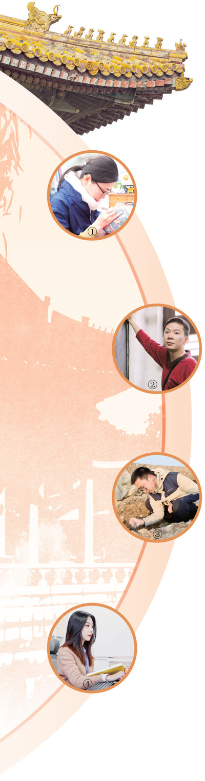 圖①:楊玉潔在修復瓷器。賴奐瑜攝 圖②:郁文韜在介紹碑文。尚 輝攝 圖③:吳偉參與明中都遺址考古發掘。寧 霄攝 圖④:康曉璐為制作APP查閱資料。朱 楷攝