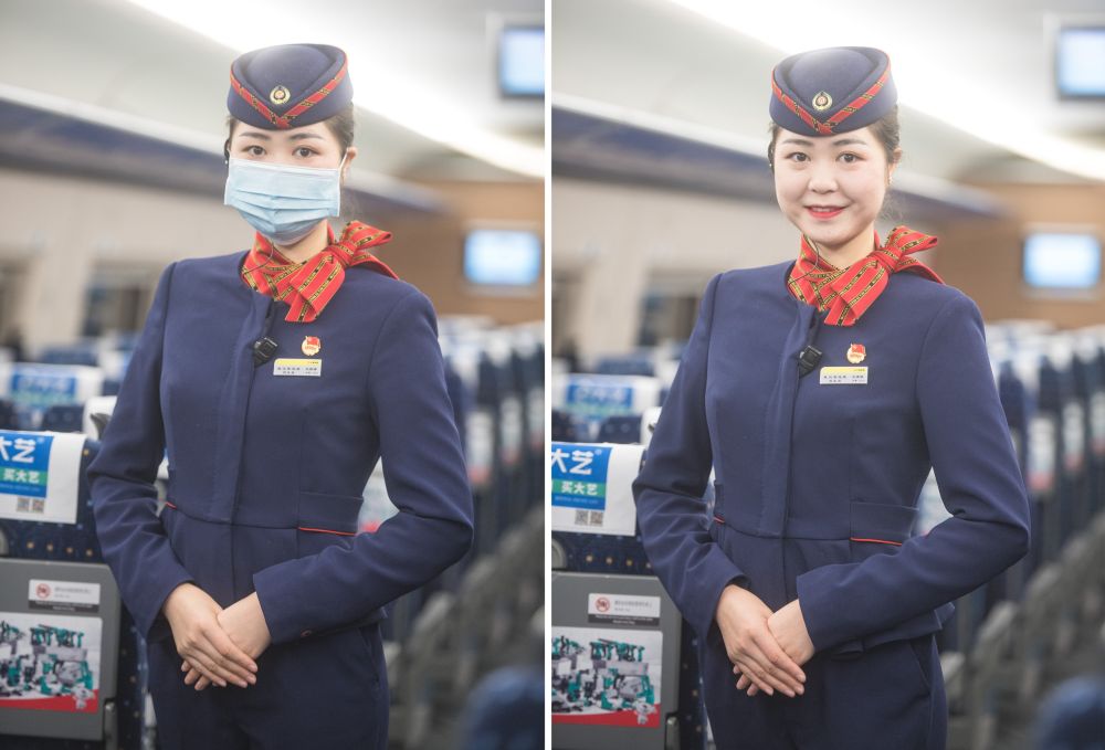 “現(xiàn)在說得最多的就是,請乘客戴好口罩、做好防護(hù)。經(jīng)歷了這么大一場疫情,感覺肩上的擔(dān)子更重了,做好服務(wù)的同時更要確保每一名乘客的安全。”站在記者面前的中國鐵路武漢局集團(tuán)有限公司武漢客運段高鐵乘務(wù)員艾婷婷20歲剛出頭,言語中顯露出超出同齡人的成熟。