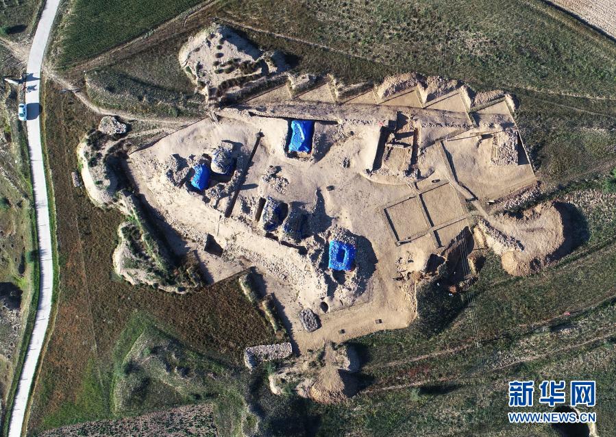 內(nèi)蒙古后城咀龍山時代石城發(fā)掘區(qū)航拍圖。新華社發(fā)(國家文物局供圖)