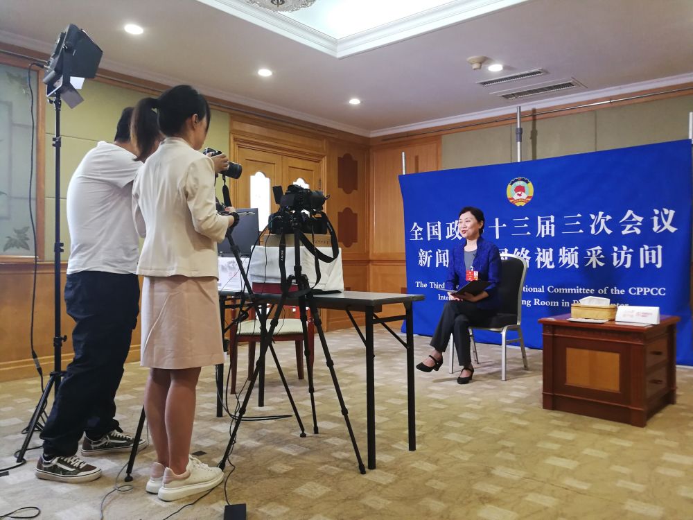 全國政協委員、湖南省政協主席李微微20日在友誼賓館駐地接受網絡視頻采訪。