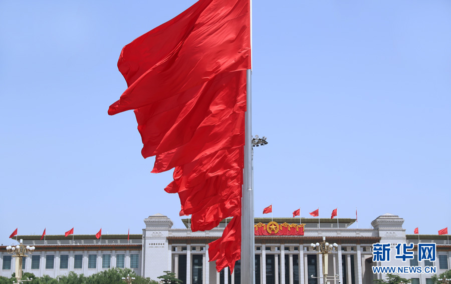 5月28日,第十三屆全國人民代表大會第三次會議在北京人民大會堂舉行閉幕會。圖為天安門廣場上紅旗飄揚。 新華網 翟子赫 攝