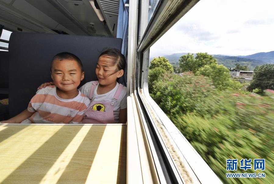 2020年8月14日,吳思語(右)帶著弟弟吳思遠(yuǎn)乘坐“小慢車”前往西昌走親戚。穿越四川涼山彝族自治州往返于普雄和攀枝花之間的5633/5634次列車,全列13節(jié)車廂,走滿全程353公里需要9個多小時。慢悠悠的火車沿途要停靠26個站,如同一座流動的村莊,盡自己最大能力解決沿途百姓出行問題。