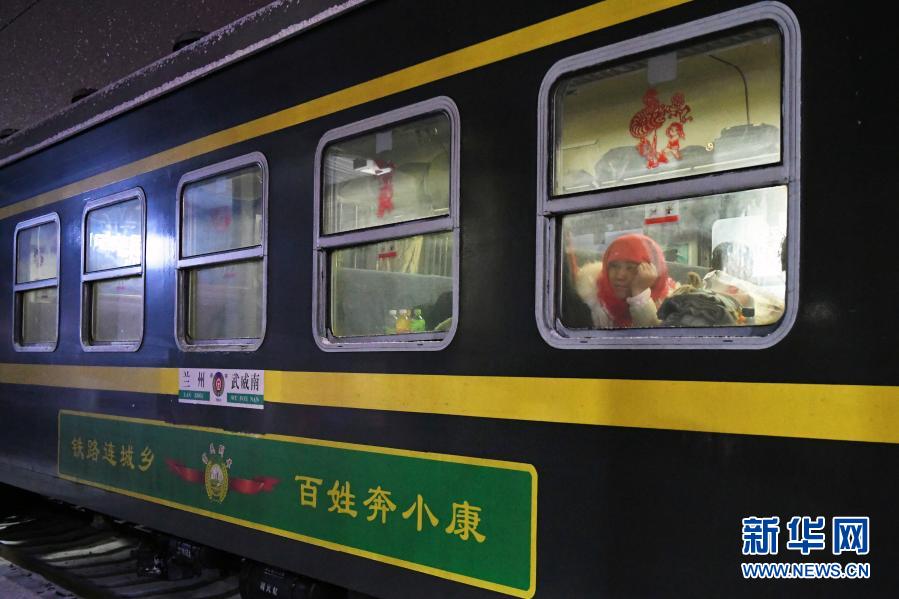 2020年1月10日,由蘭州開往武威南的7505次列車??吭谟赖钦荆幻每屯虼巴?。由甘肅蘭州開往武威南的7505次列車是一列老式綠皮車,串聯起蘭州和武威兩座城市之間的十幾座小站。因為票價便宜、乘坐方便,它成為沿線鄉村群眾進城購物、售賣農產品、探親訪友、外出打工的首選交通工具。