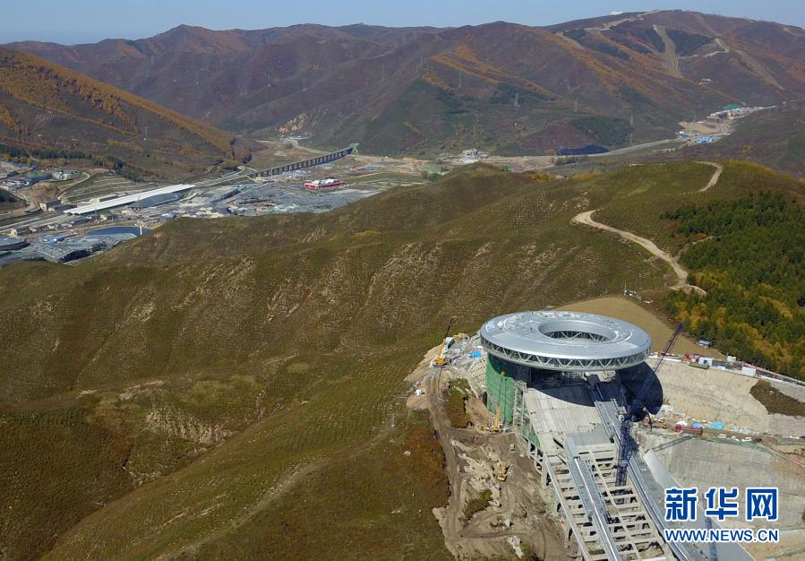 這是2020年9月26日拍攝的建設中的國家跳臺滑雪中心與不遠處的京張高鐵太子城站(無人機照片)。一百多年前,京張鐵路打破了中國人不能自建鐵路的斷言。2019年京張高鐵開通,它連接著2022年北京冬奧會的兩大舉辦地北京和張家口,帶動了沿線各地經濟和旅游發展,為京津冀協同發展注入新動力。