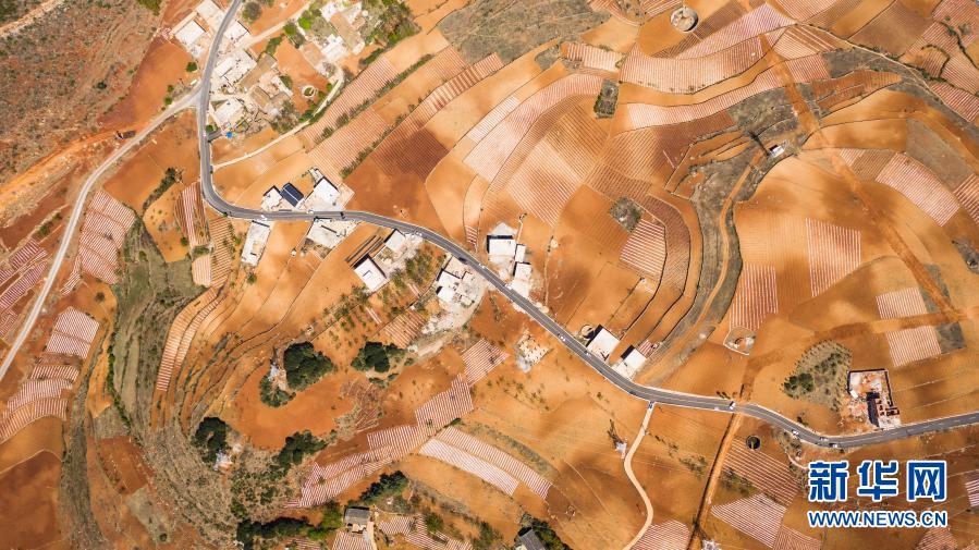 這是2020年4月26日拍攝的貴州路橋集團(tuán)承建的貴州威寧縣域龍街至迤那路段(無人機(jī)照片)。