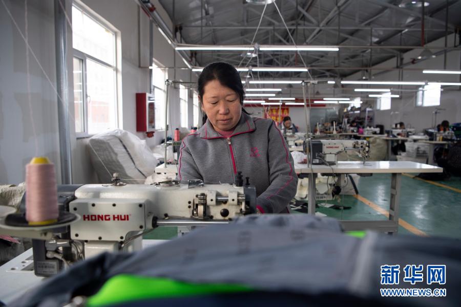 2020年12月29日,李三花在嵐縣普明鎮移民小區扶貧車間里加工箱包。新華社記者 楊晨光 攝