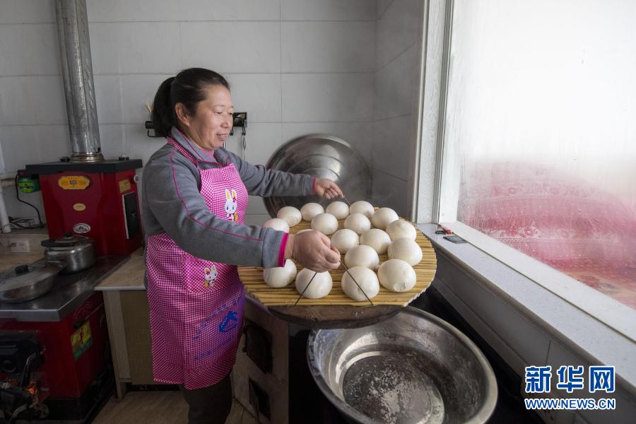 2020年12月31日,李三花在嵐縣普明鎮普明村的家里蒸饅頭。新華社記者 楊晨光 攝