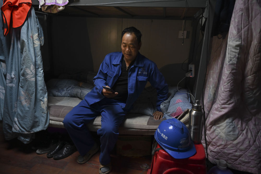1月25日,在福建省福州市閩侯縣的億格戶外用品有限公司生產車間,四川籍計件工人張良國在休息時與大兒子視頻通話。