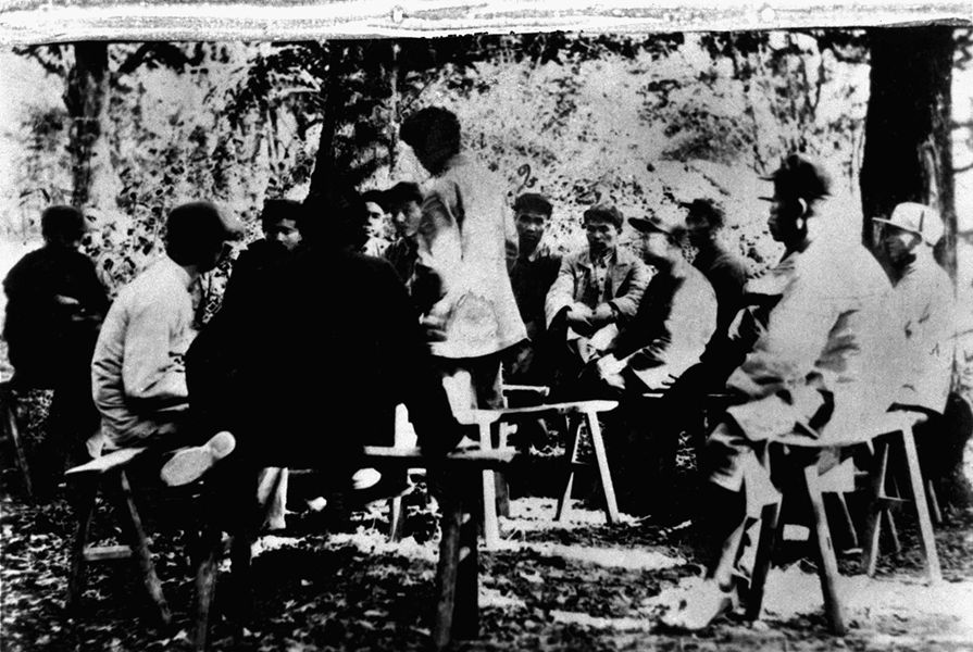 中央執(zhí)行委員會舉行第一次會議,中間站著講話的是毛澤東 新華社圖片