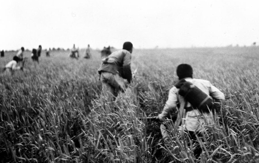 八路軍戰士在冀中的麥田里進行伏擊戰 新華社圖片