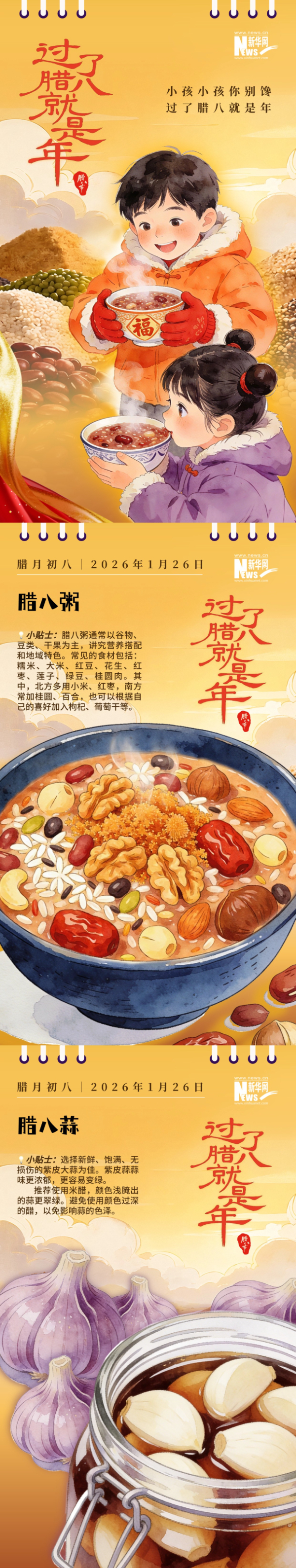 “小孩小孩你别馋,过了腊八就是年”,软糯的腊八粥熬出冬日的温暖,玻璃罐里的腊八蒜酿出生活的酸甜。一碗暖粥下肚,一坛蒜香扑鼻,年味从这里悄然蔓延。岁岁年年,愿新春的美好皆如约而至。