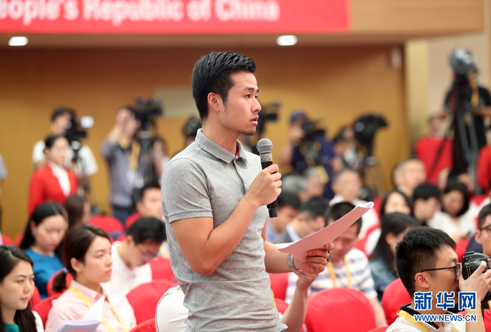 9月27日,慶祝中華人民共和國成立70周年活動新聞中心在梅地亞中心二層新聞發布廳舉辦第三場新聞發布會,中央農村工作領導小組辦公室主任、農業農村部部長韓長賦,國務院扶貧開發領導小組辦公室主任劉永富介紹全面建成小康社會,扎實推進脫貧攻堅和鄉村振興,并回答記者提問。圖為現場記者提問。新華網 陳杰 攝