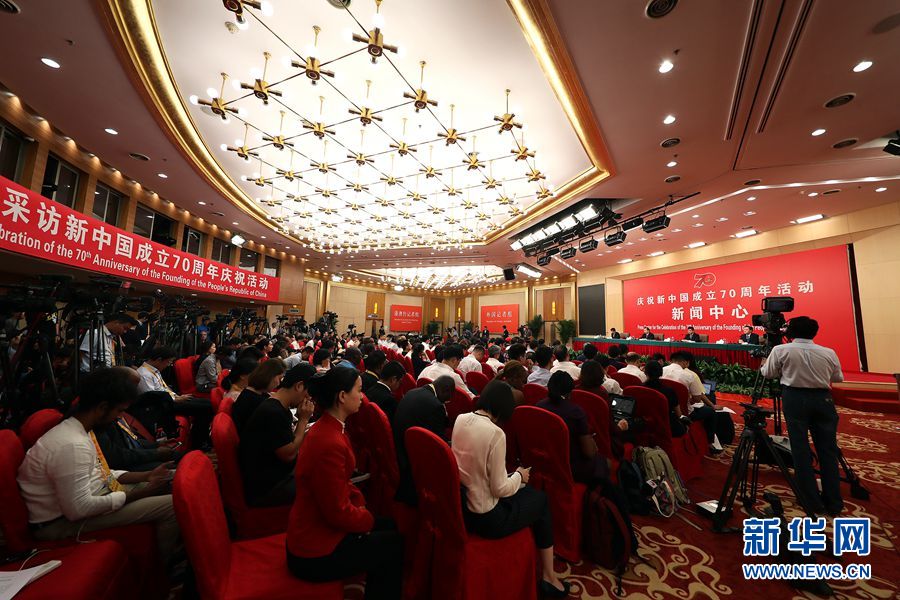 9月29日,慶祝中華人民共和國成立70周年活動新聞中心在北京梅地亞中心二層新聞發布廳舉辦第四場新聞發布會。圖為新聞發布會現場。新華網記者 焦鵬 攝