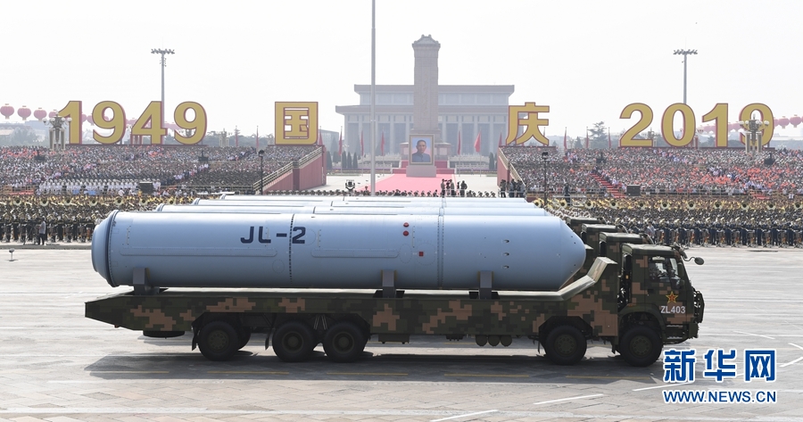 10月1日上午,慶祝中華人民共和國(guó)成立70周年大會(huì)在北京天安門廣場(chǎng)隆重舉行。這是巨浪-2導(dǎo)彈方隊(duì)接受檢閱。 新華社記者 高潔 攝