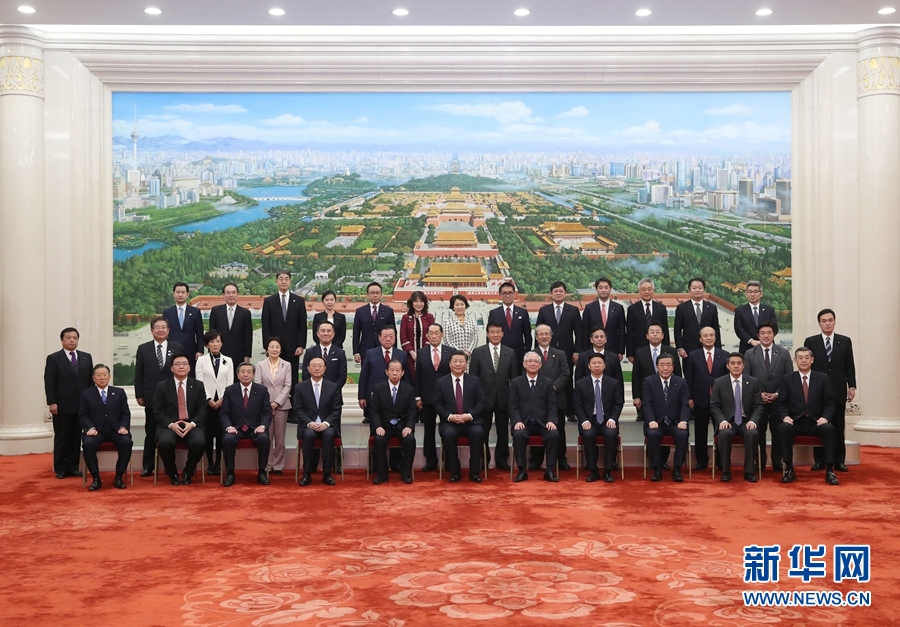 會見后,習近平與參加中日執政黨交流機制第七次會議部分日方代表合影留念。