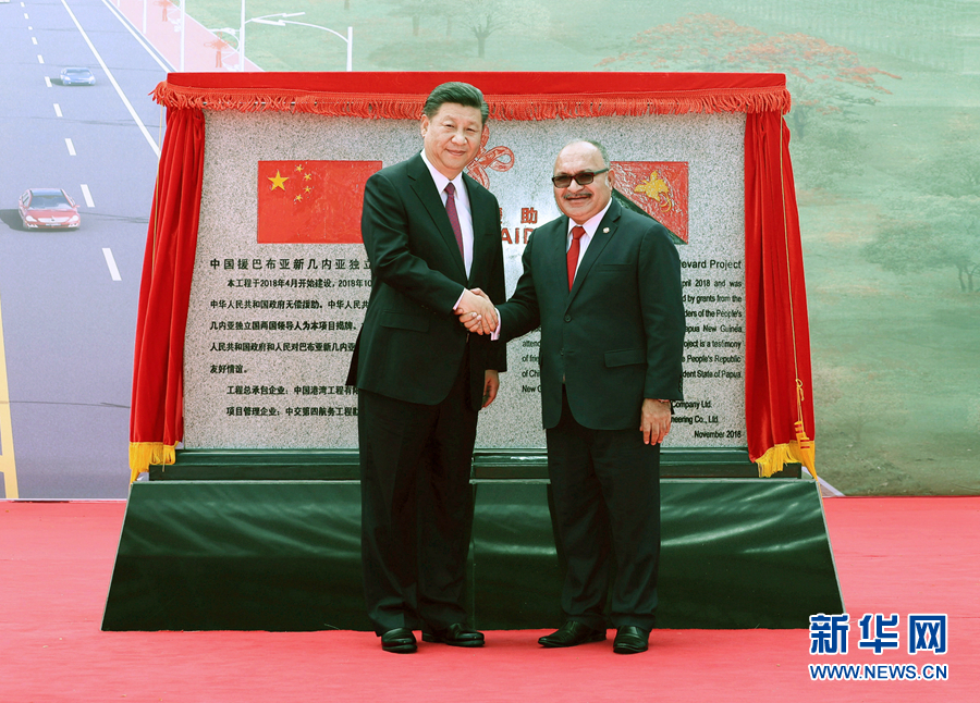 11月16日,國家主席習近平在莫爾茲比港和巴布亞新幾內亞總理奧尼爾共同出席中國援建的獨立大道移交啟用儀式。新華社記者 鞠鵬 攝