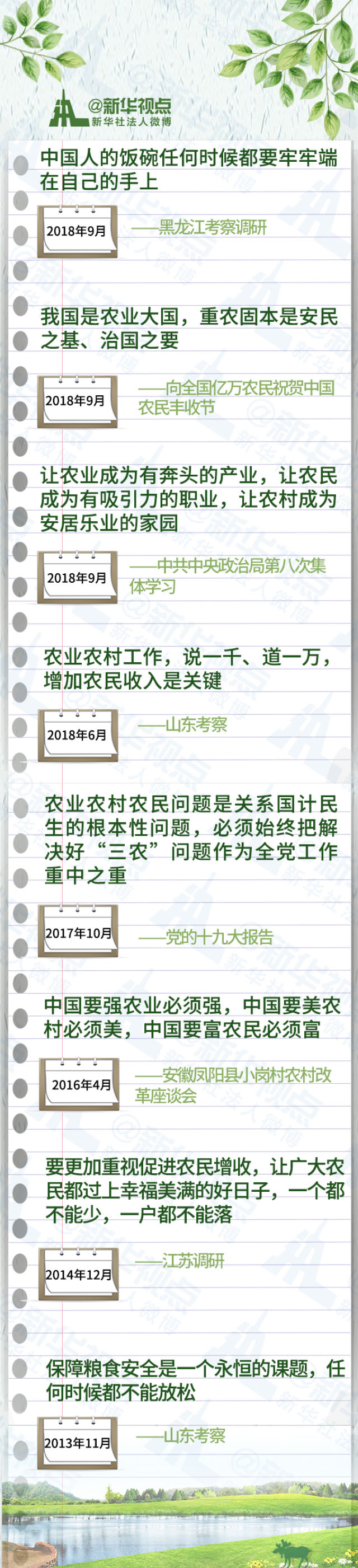 總書記情系“三農(nóng)”,無(wú)論是國(guó)內(nèi)考察調(diào)研,還是集體學(xué)習(xí)或出席會(huì)議,都對(duì)“三農(nóng)”工作提出過(guò)明確要求。