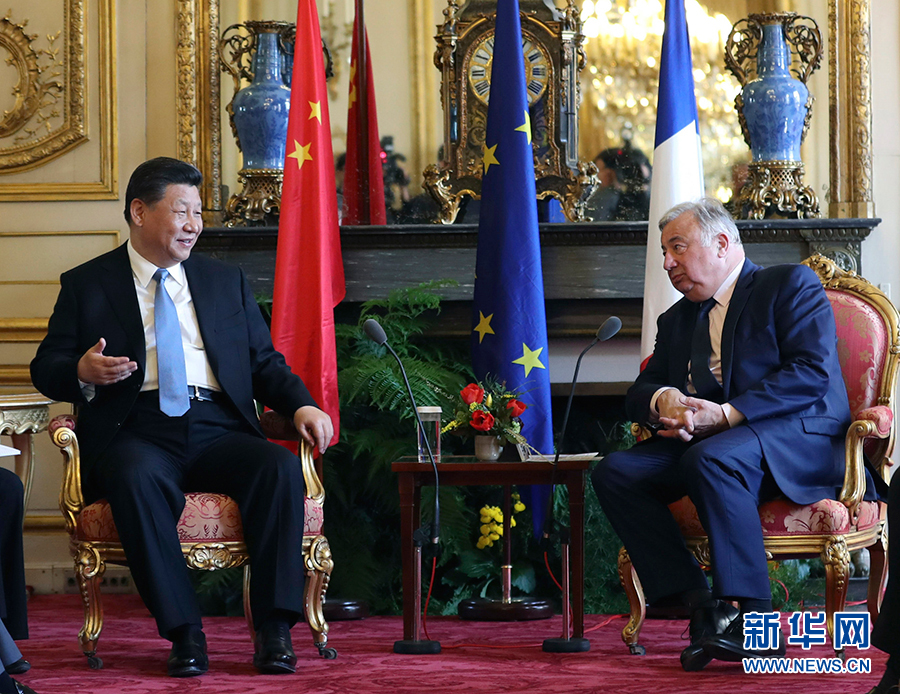 3月26日,國家主席習(xí)近平在巴黎會(huì)見法國參議長拉爾歇。 新華社記者丁海濤攝