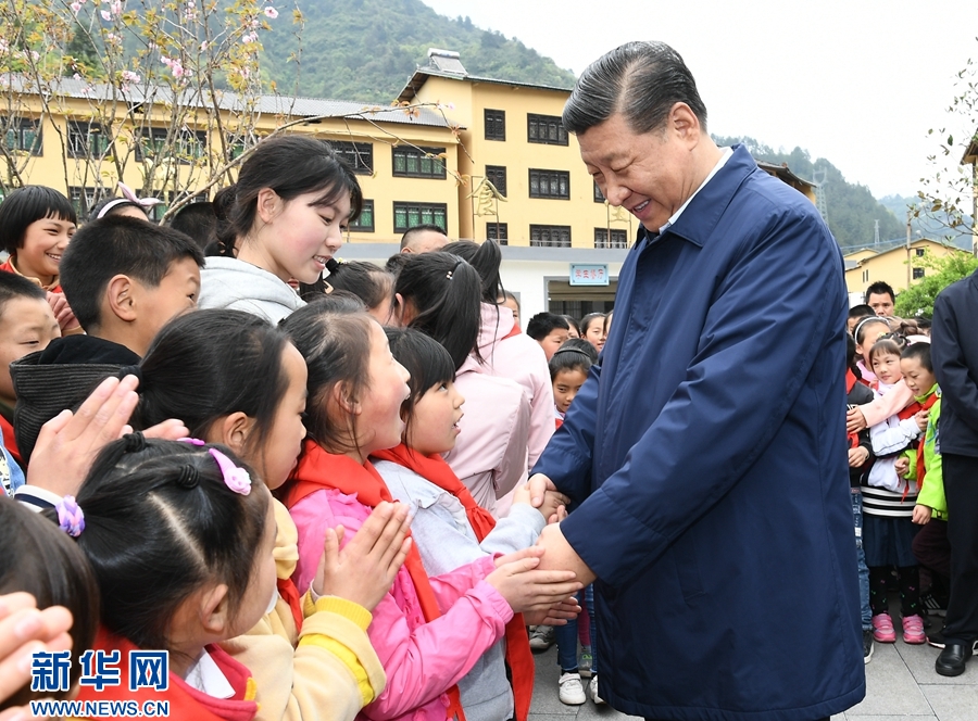 習近平首先來到中益鄉小學。學校操場上,小學生們正在開展課外文體活動。看到總書記來了,學生們圍攏過來,紛紛問習爺爺好,總書記高興地同大家交談,詢問他們學習和生活情況。中益鄉地處大山深山之中,群眾居住比較分散,孩子上學是個難題。習近平指出,“兩不愁三保障”,很重要的一條就是義務教育要有保障。再苦不能苦孩子,再窮不能窮教育。要保證貧困山區的孩子上學受教育,有一個幸福快樂的童年。習近平走進師生食堂,仔細察看餐廳、后廚,了解貧困學生餐費補貼和食品安全衛生情況。習近平囑咐學校和老師既要當好老師,又要當好臨時家長,把學生教好、管好。要把安全放在第一位,確保學生在學校學、住、吃都安全,讓家長們放心。他希望老師們扎根山區,獻身鄉村教育事業,為群眾脫貧貢獻一份力量。