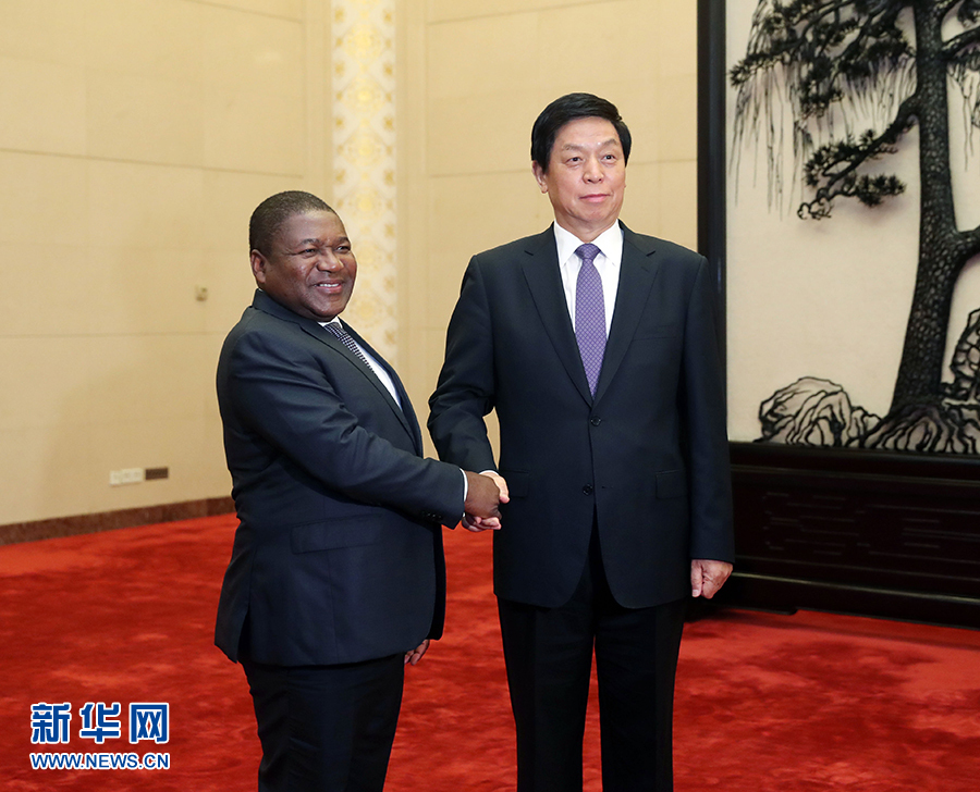 4月24日,全國人大常委會委員長栗戰書在北京人民大會堂會見莫桑比克總統紐西。 新華社記者劉衛兵攝