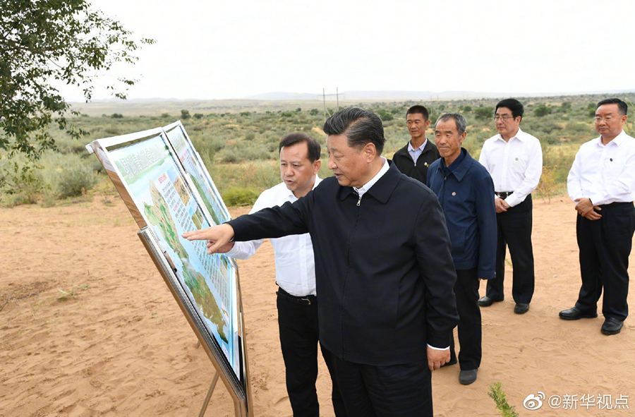 正在甘肅考察的習(xí)近平總書(shū)記,21日來(lái)到古浪縣八步沙林場(chǎng),察看林場(chǎng)風(fēng)貌,聽(tīng)取武威市防沙治沙情況匯報(bào)和八步沙林場(chǎng)“六老漢”三代人治沙造林的感人事跡介紹,還拿起一把開(kāi)溝犁,參與到治沙勞動(dòng)中。習(xí)近平強(qiáng)調(diào),我們要實(shí)現(xiàn)從富起來(lái)到強(qiáng)起來(lái),就要把生態(tài)文明建設(shè)當(dāng)作大事來(lái)抓,建設(shè)美麗中國(guó)。當(dāng)前,生態(tài)文明觀念日益深入人心,要繼續(xù)發(fā)揚(yáng)“六老漢”的當(dāng)代愚公精神,再接再厲,再立新功,久久為功,讓綠色的長(zhǎng)城堅(jiān)不可摧。(文字記者:張曉松、朱基釵 攝影記者:鞠鵬、謝環(huán)馳)?