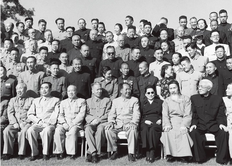 中華人民共和國(guó)第一屆全國(guó)人民代表大會(huì)第一次會(huì)議全體代表于1954年9月21日合影。毛澤東主席和代表們?cè)谝黄稹G芭抛笃穑憾匚洹⒅芏鱽?lái)、李濟(jì)深、劉少奇、毛澤東、宋慶齡、張瀾、林伯渠。 新華社稿 侯波/攝