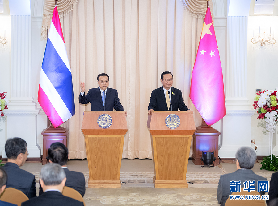 兩國總理積極評價中泰合作取得的新成果。李克強表示,泰國是中國平等、互利的好朋友和好伙伴。雙方互補優勢強、合作潛力大。中泰兩國的合作,正如曼谷湄南河上航行的長尾船,同舟共濟,快速前進,行穩致遠。我們愿同泰方共同努力,深化睦鄰友好關系,合作應對挑戰,實現互利共贏。