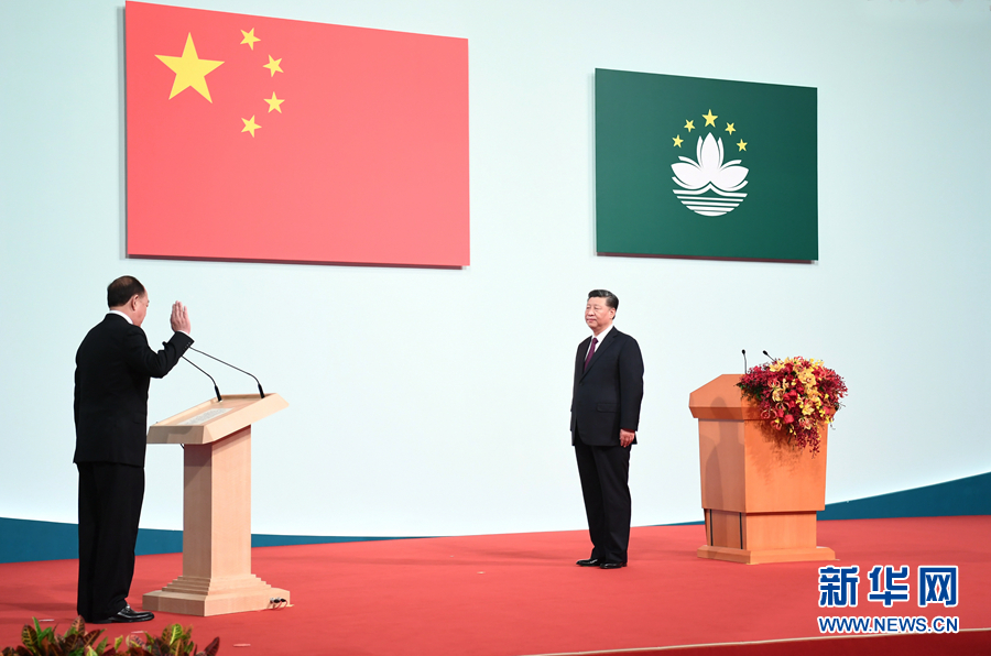 新華社澳門12月20日電(記者李忠發、朱基釵、郭鑫)慶祝澳門回歸祖國20周年大會暨澳門特別行政區第五屆政府就職典禮20日上午在澳門東亞運動會體育館隆重舉行。中共中央總書記、國家主席、中央軍委主席習近平出席并發表重要講話。他指出,澳門回歸祖國20年來,澳門特別行政區政府和社會各界人士同心協力,開創了澳門歷史上最好的發展局面,譜寫了具有澳門特色的“一國兩制”成功實踐的華彩篇章。他希望澳門特別行政區新一屆政府和社會各界人士站高望遠、居安思危,守正創新、務實有為,在已有成就的基礎上推動澳門特別行政區各項建設事業躍上新臺階。