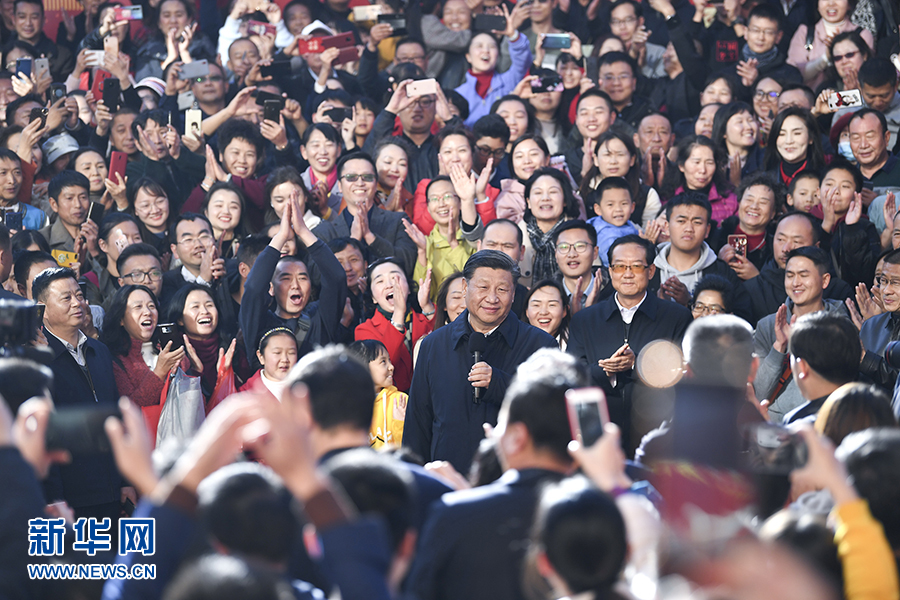 1月19日至21日,中共中央總書記、國家主席、中央軍委主席習近平來到云南,看望慰問各族干部群眾,向全國人民致以新春祝福。這是20日下午,習近平在昆明國際會展中心展廳外廣場上,向云南群眾、向全國各族人民、向港澳臺同胞和海外僑胞致以新春祝福。 新華社記者 謝環馳 攝